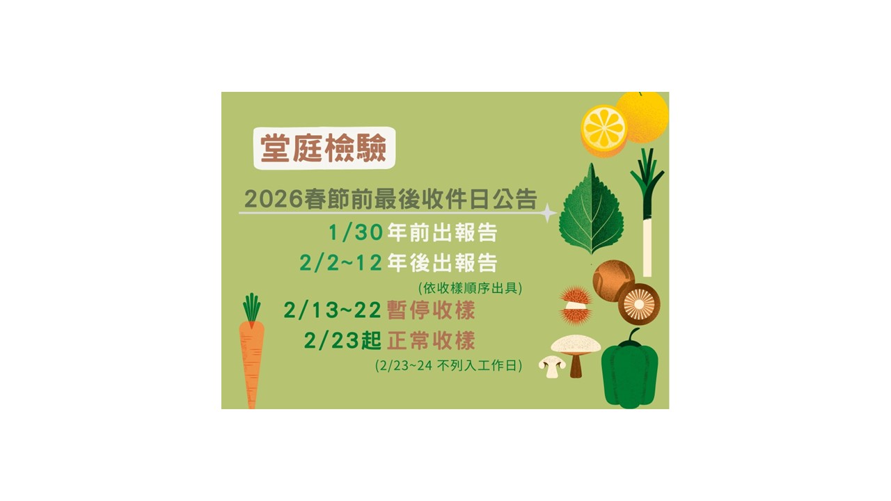 以上食品檢驗項目將依政府機關衛福部食藥署公告之法規命令、堂庭配合調整之。